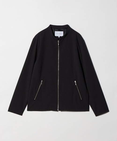 シングルフロントにスタンドカラーを組み合わせた、すっきりとしたライダースジャケット。