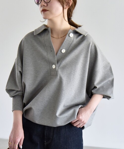 ラグラン型のビックシルエットに、ドルマン袖でリラックス感のあるポロプルオーバー。
