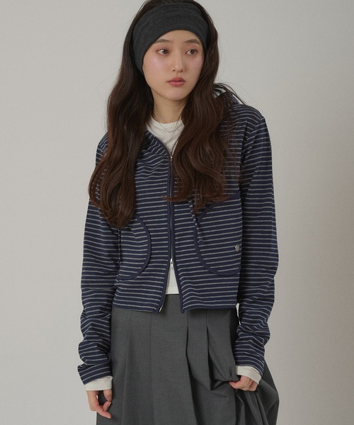 コンパクトなシルエットに、立体感のあるラウンドポケットをあしらったジップフーディー。