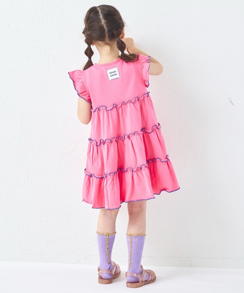 ギャザーたっぷりのティアードデザインで、動くたびにシルエットがふわりと揺れるワンピース。