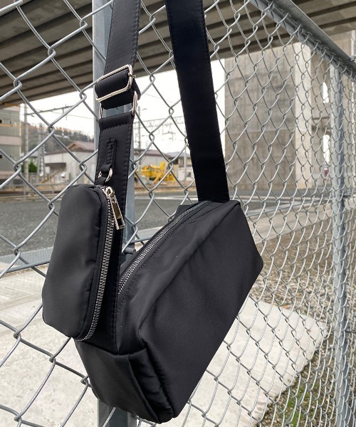 参考商品名:スクエアボディバッグ / ナイロンバッグ ショルダーバッグ ペットボトルが入る ポーチ付き ウエストポーチ 肩掛け 無地 ブラック レッド 黒 赤
