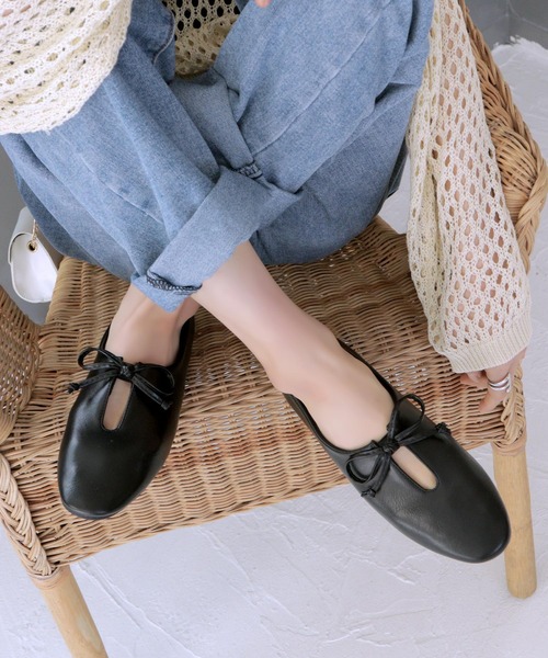 参考商品名:ふかふかインソール/リボン付きスリットデザインのぺたんこフラットシューズ