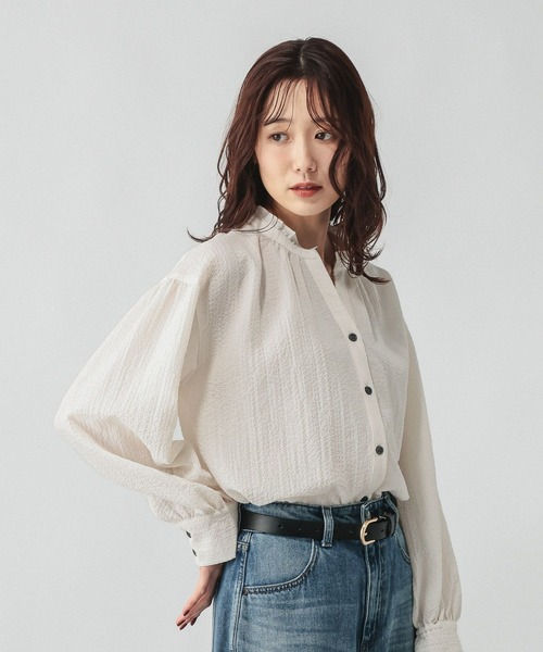 程よいフリル襟が目を引く大人のブラウス