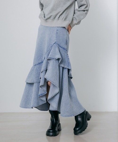 ヴィンテージライクなウォッシュ加工が甘めなフリルを程よく
