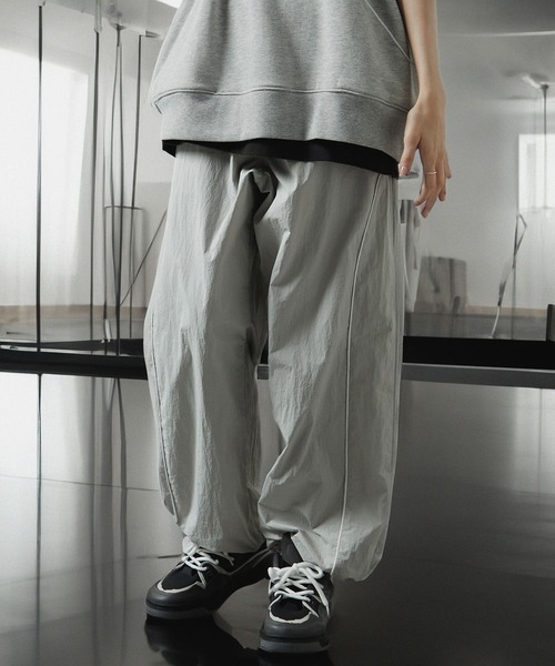 参考商品名:【Alfred Alex】切替パイピング ハイウエスト ワイドナイロンパンツ