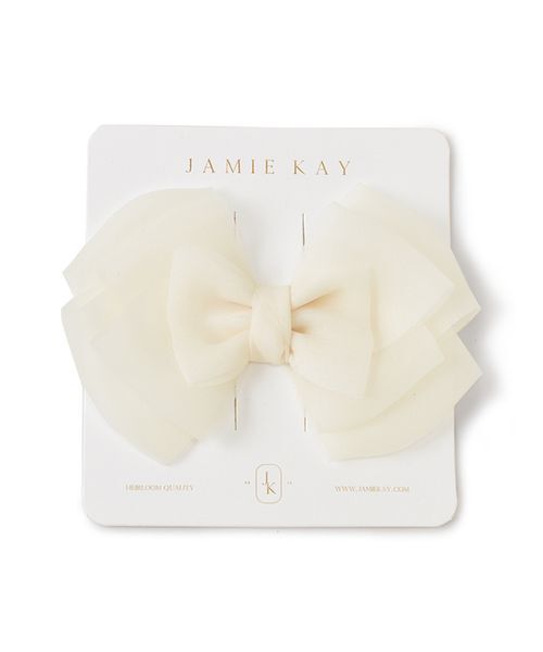 繊細で透け感のあるjamiekayで人気のオーガンジー素材を使用したリボンピン。軽やかな質感とふんわりとしたボリューム感が、ヘアスタイルに優しい華やかさをプラスしてくれます。ナチュラルな色合いと上品なデザインで、普段使いから特別な日のコーディネートまで幅広く活躍。お子様の髪にも優しくフィットし、ギフトにもおすすめのアイテムです。