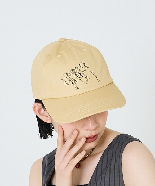 LYの「Letter cap」。手書きのメモやタイルの落書きからトレースしたレター刺繍をフロントに配したベースボールキャップ。