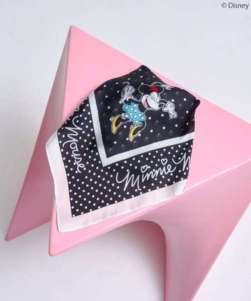 「ミッキーマウス」、「ミニーマウス」、「ドナルドダック」がさりげなく描かれたアソート柄の大判スカーフ。首に巻いたり、肩にかけたり、バッグに付けたりなどさまざまなスタイリングでお使いいただけます。