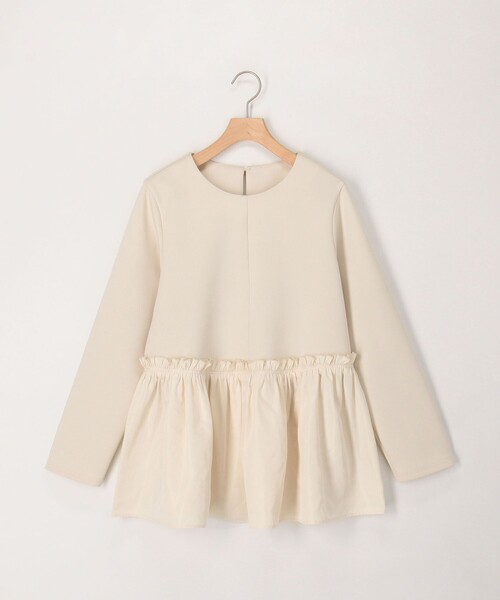 きちんと華やぐ、大人のドッキングブラウスダンボールニットとライトタフタを組み合わせた、着映え力の高いペプラムブラウス。