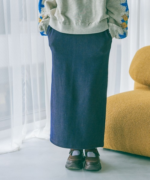 細いストライプ柄と深めのスリットで、タイトシルエットのすっきり見えを叶える工夫が嬉しいアイテムです!