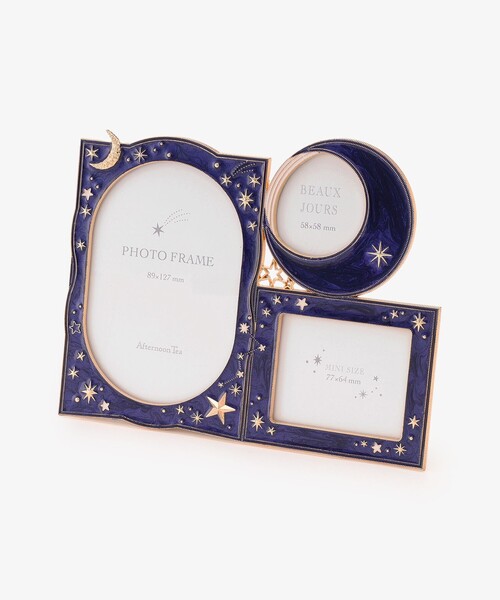 星や宇宙を連想させる天体モチーフをあしらった、3面仕様のフォトフレームです。アフタヌーンティーでしか手に入らない、特別感のあるオリジナルデザイン。複数の写真を一度に飾ることができ、1枚1枚に物語を感じさせてくれるのも魅力です。リビングやシェルフ、デスクまわりなど、お気に入りのスペースにぜひ飾ってみてはいかがでしょうか。