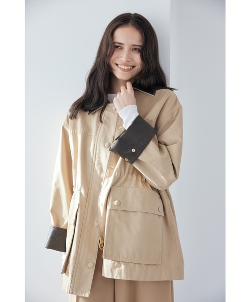 表地はコットン100%。ハリのある素材感に、バイオウォッシュで着やすさとこなれ感をプラス。襟と袖口の折り返し部分に使用した、エコレザーも効いています。