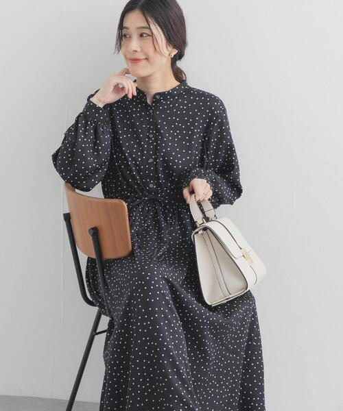 シックに纏う、大人のドットプリントワンピースダークカラーをベースに、小ぶりなドットプリントでシックに仕上げた大人のためのワンピース。