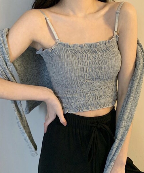 ブラ要らずで美シルエット。1枚で決まるカップ付きシャーリングベア!インナー選びに迷わない、便利なカップ付き仕様。全面に施された柔らかなシャーリングが体に優しくフィットし、ズレ落ちる心配を軽減しました。ブラ紐の露出を気にせず、オフショルやシアートップスもスマートに着こなせます。リラックスしたい日のデイリー使いから、お出かけのインナーまで手放せなくなる1枚です。くしゅくしゅとしたシャーリング素材が、単調になりがちなコーディネートのアクセントに。Vネックのカーディガンやシャツの胸元から覗かせるだけで、奥行きのある着こなしが完成します。カラーバリエーションも豊富なので、その日の気分に合わせて「差し色」として楽しむのもおすすめです。
