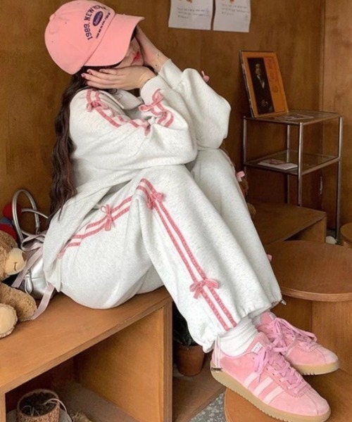 参考商品名:【 セットアップ 】サイドラインミニリボンスウェットブルゾン &パンツ SET