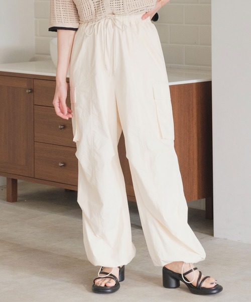 キーワード:カーゴパンツ レディース ウエストゴム ストレート フルレングス レギュラー ワイドパンツ 無地