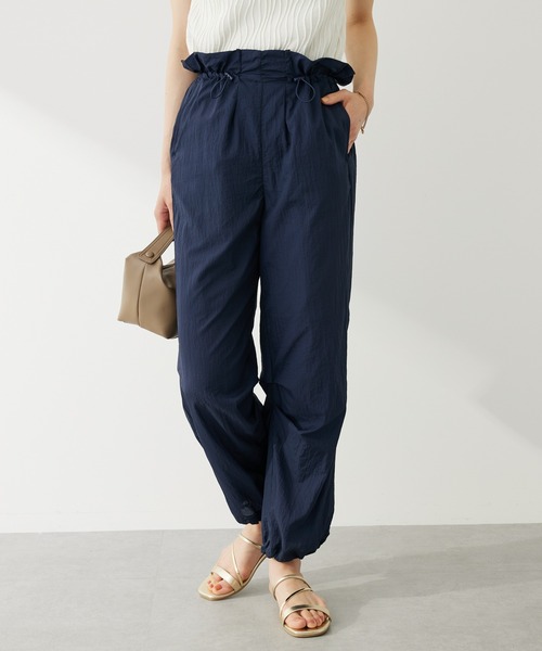 キーワード:パンツ レディース ウエストゴム フルレングス リブ 無地