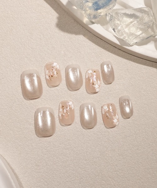 やわらかな光をまとった水光ネイル|ショートスクエア