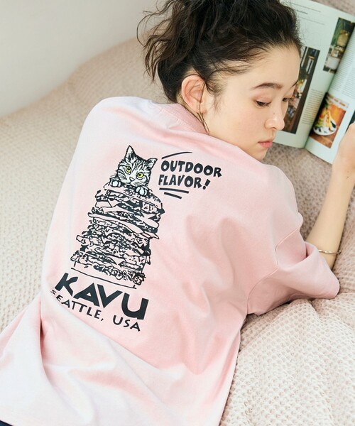 別注 バックデザイン ハンバーガー 刺繍ワッペン クルーネック Tシャツ●毎シーズン人気のKAVU別注シリーズに新作のTシャツが仲間入り