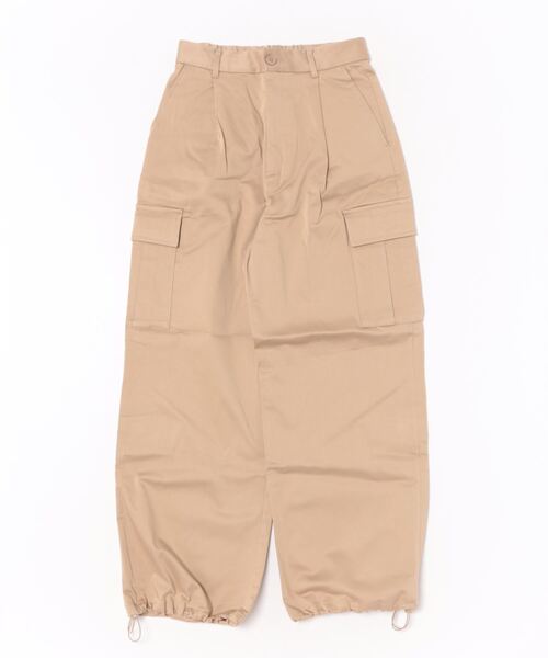 キーワード:カーゴパンツ レディース ウエストゴム ストレート ハイウエスト フルレングス ワイドパンツ 無地