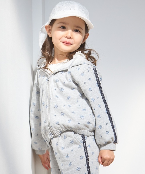 全面にお花がちりばめられた女の子らしいジップパーカです。