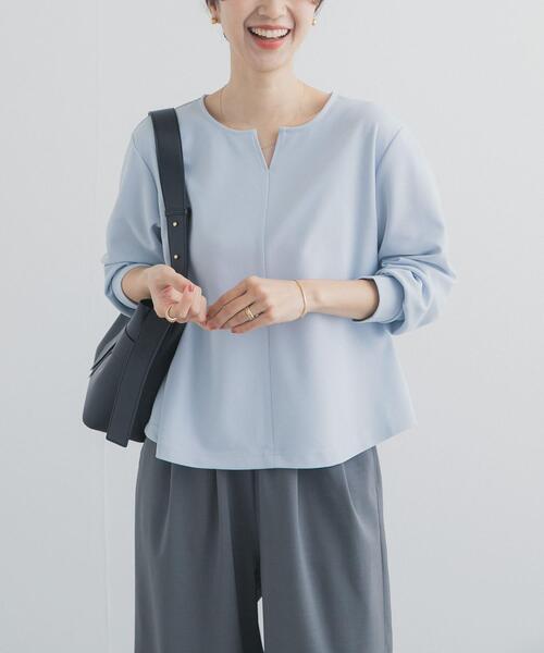 すっきりとしたスリットネックのデザインが顔まわりをシャープに演出し、上品で洗練された印象に。