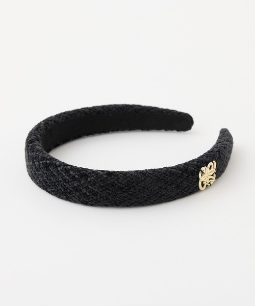 ツイード素材が上品な印象のロゴ付きカチューシャ。