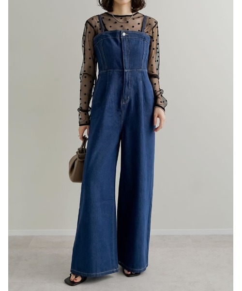 参考商品名:[低身長/高身長サイズ有][着痩せ&脚長効果]コットンデニムベアオールインワン