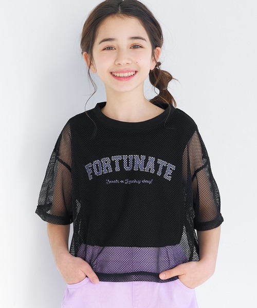 ジュニア トップス キッズ 2点セット メッシュトップス タンクトップ 半袖 透け感 ロゴ ロゴT ストレッチ 女の子 クルーネック 120 130 140 150 COCA