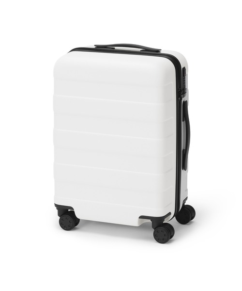 鍵を使わず施錠できるダイヤル式TS(TSA)ロックを使用しています。キャリーバーの高さを自由に調整できるストッパー機能付きのキャリーケースです。走行音が静かなキャスターを採用。内装に再生素材を使用しています。