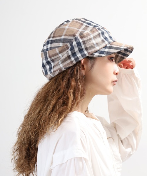 UVカット帽子/hat/cap/キャスケット/レディース帽子/麻キャスケット/春帽子/夏帽子/軽量帽子/吸水速乾帽子/丸みシルエット帽子/サイズ調整帽子/無地帽子/チェック帽子/カジュアル帽子/きれいめ帽子/女優帽/チェックアイテム/春服/春物