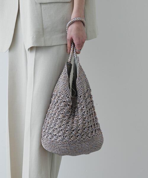 【旬の輝きを。トレンドのメタリック素材を楽しむ編みバッグ】・今季トレンドのメタリック素材を使用し、一点投入で着こなしを鮮やかにアップデート