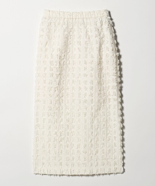 大きめなスクエアのカットジャガードで表現したフリンジが印象的なスカート。