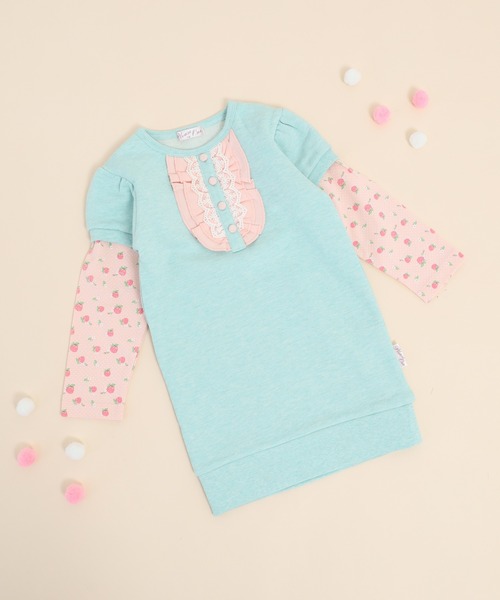 繊細な小花柄がほどこされたキッズ向けのロングスリーブドレスは、重ね着風デザインで一枚で華やかなレイヤードルックを楽しめます。