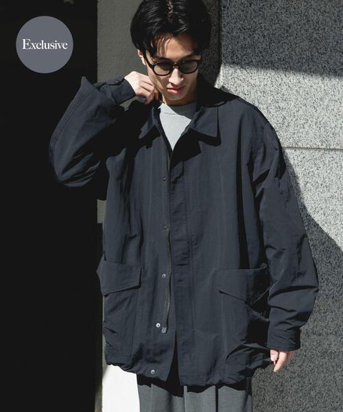 既存のジャケットをベースにシンプルにアレンジ。背面には大きなバックポケットを配置し、左右のフラップポケットは内側・外側に収納できる二重構造で、機能性も充実しています。