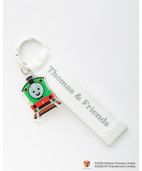 ロゴ入りテープに「きかんしゃトーマス」のアクリルモチーフをあしらったチャーム。