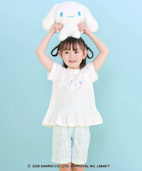 オフホワイトはシナモロールを主役に、トップスの裾にフリルを添えて、ふんわりやさしい女の子らしさを演出。