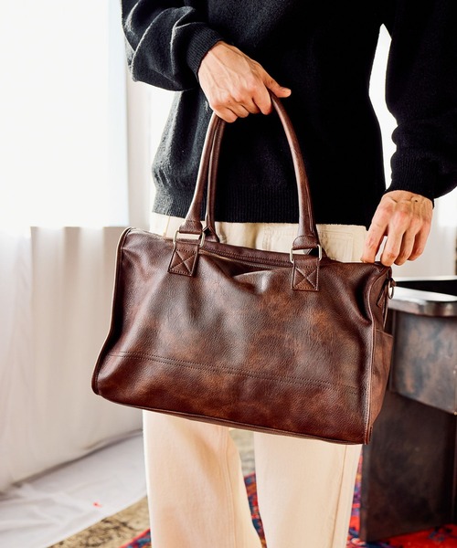 ユーズドライクな風合いと上品な光沢感が漂うボストンバッグ。
