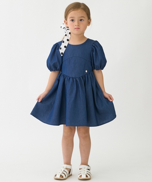 パフスリーブとスカート部分のシルエットが魅力的なワンピースです。
