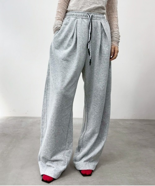 大人気のカーブシルエット、個性的なウエストディティールはそのままに素材は履きやすいライトなスウェット素材に置き換えました。