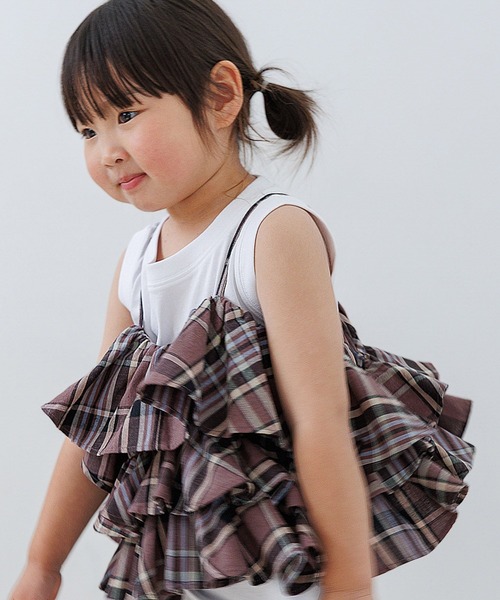 ナチュラルな風合いが魅力のリネン素材を使用した、フリルたっぷりのキャミソール。