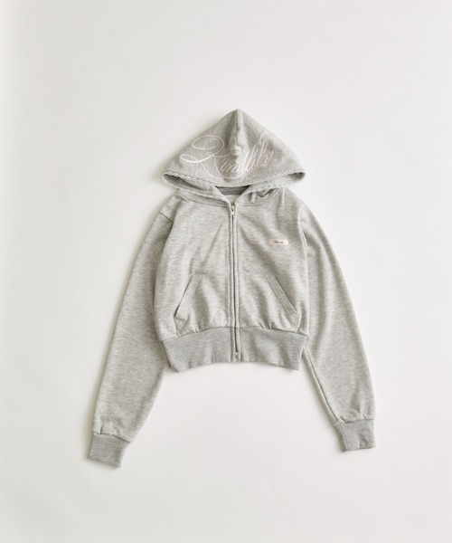 ・フードにロゴ刺繍やレースを施し、カジュアルアイテムながら甘さもあるデザイン。