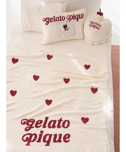 「胸がきゅんとする」をコンセプトにデザインした、ハートモチーフのガーリーな寝具シリーズです。なめらかな肌触りの'スムーズィー'素材に、心ときめくハートジャガードを散りばめたマルチカバー。キャッチーなロゴジャガードもワンポイントで添えました。ベッドのカバーリングにプラスするだけで、寝室に可愛いアクセントが生まれます。色はオフホワイト、ピンクの2色展開。同シリーズのルームウェアと合わせたり、ケーキジャガードのピローケース、ハートケーキ型のお昼寝クッションとのコーディネートもおすすめです。