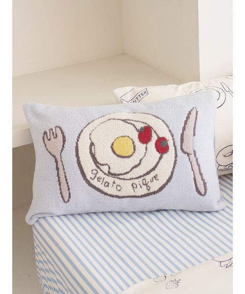 毎日の目覚めと朝ごはんが楽しみになりそうな、遊び心たっぷりの寝具シリーズです。目玉焼きとトマトが乗ったモーニングプレートをジャガードで描いた、爽やかなカラーリングのピローケース。ふんわりと軽やかな感触の’エアリーモコ’素材を使用し、季節を問わずお楽しみいただけます。同シリーズの寝具セットとのコーディネートも可能。