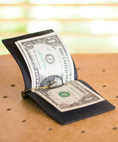 ポケットでもかさばらない一枚革のマネークリップ