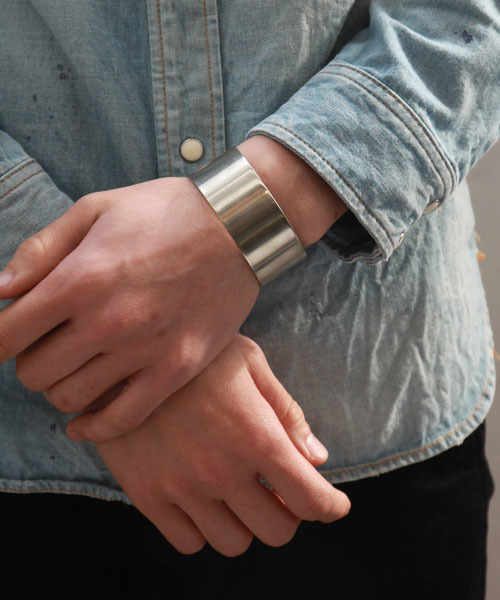 フルートなど管楽器に使用する銅、亜鉛、ニッケルで形成されるジャーマンシルバーを使用したバングル。ご好評頂いた15AT-350と15AT-351の中間サイズ。