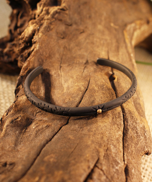定番アイテム中央に太陽をイメージしたステンレス製スリムバングル。