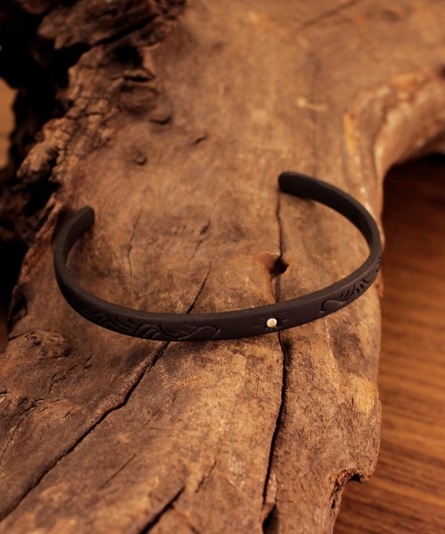 中央に太陽をイメージしたステンレス製スリムバングル。