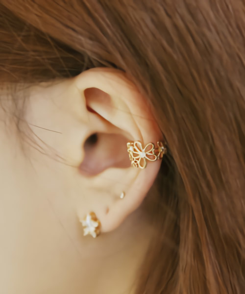 商品名:F&D : カーブライン&フラワーイヤーカフ
