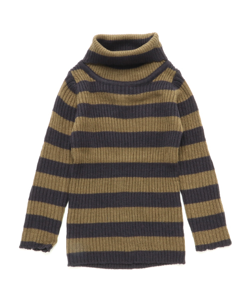 秋冬のマストアイテム、太ボーダーが新鮮なリブタートルネックです。